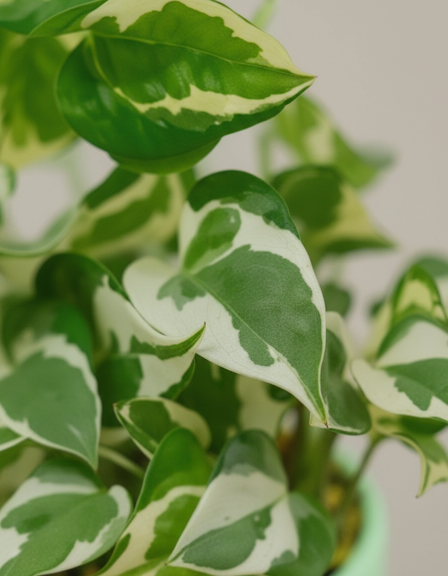 The Snow Queen is the "glamour puss" of the Pothos family. It has more white variegation than the Marble Queen, giving it a lighter, almost frosted appearance.